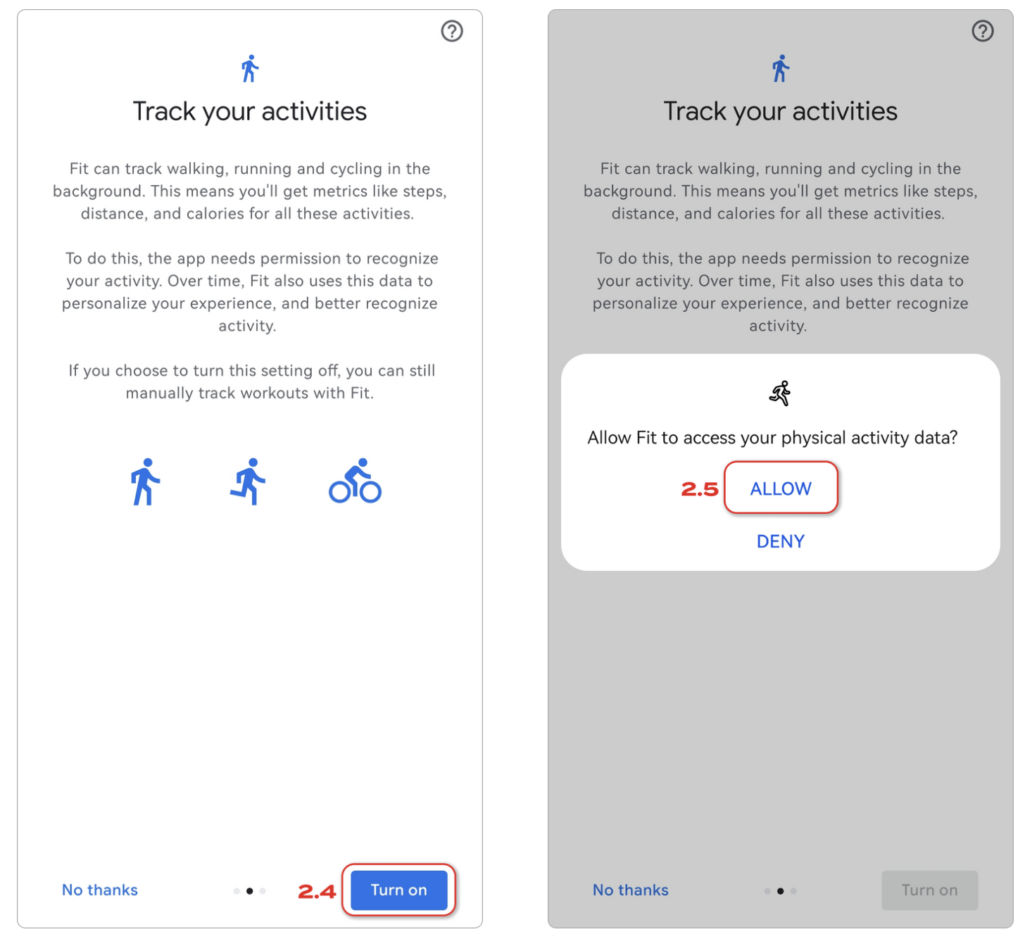 2.4 Give permission ― “Turn on” or refuse ― “No thanks” to run the program in the background and automatically track activity. Recommended option to turn this mode on.